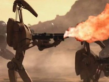 Men, watch those battle droids with the flamethrowers!